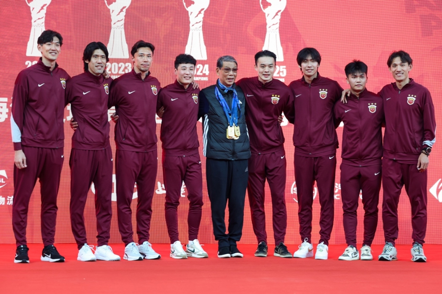 本次总结会特别邀请中国足球名宿徐根宝指导亲临现场。“祝贺海港取得三连冠,希望俱乐部再接再厉,给国家输送更多优秀的球员,让中国足球走向世界,祝海港成功!”总结会上,武磊、王燊超、颜骏凌、张琳芃、吕文君、刘若钒以及小将李新翔、蒯纪闻,共同为徐根宝戴上2025赛季冠军奖牌,令这位老帅颇为感慨,“感谢他们这一片心意,最让我高兴的是从武磊他们这批队员,到蒯纪闻、李新翔都起来了,还有刘若钒,他们一起给我戴上金牌,再重,也是一片心意!”