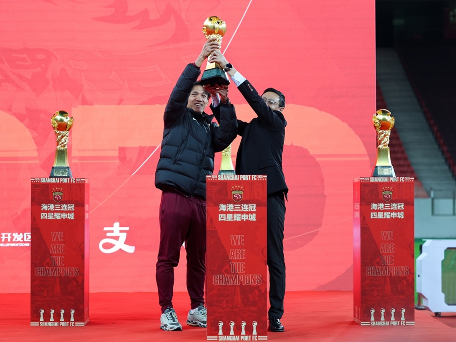 2025赛季,上海海港队以20胜6平4负、积66分的战绩,继2023、2024赛季蝉联中超冠军后,再度捧起火神杯,达成了“三连冠”的成就。门将颜骏凌更是在本赛季达成500场出场纪录,诠释了“一人、一城、一队”的坚守。一路走来,海港大家庭同心同行,守望相助,共同铸就了这个充满汗水与荣光的冠军之年。