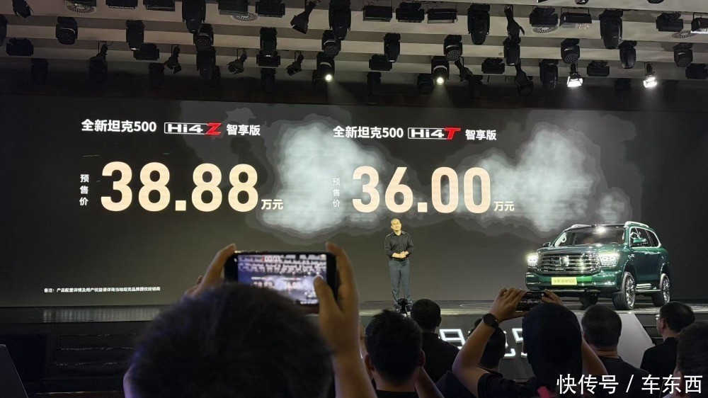 此次全新坦克500预售共有两个版本,其中全新坦克500 Hi4Z智享版预售价38.88万元,全新坦克500 Hi4T智享版预售价36万元。
