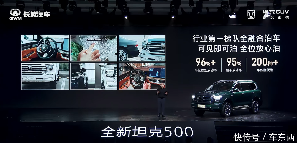 泊车方面,全新坦克500搭载长城全融合泊车的方案,支持断头路车位、 斜方车位和超窄车位等二百多种车位,并且对于地砖车位,甚至是划线不清晰的一些车位,也进行了针对性的优化。